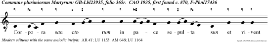 | Responsory 3: CAO 7772 Tradiderunt corpora su a pro ter deum ad supplicia et meruerunt habere coronas perpetuas. |