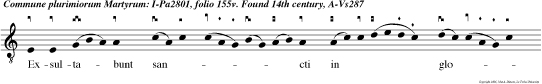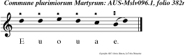 | Antiphon 5: CAO 3720 Martyrum chorus laudate dominum in excelsis. e u o u a e. |