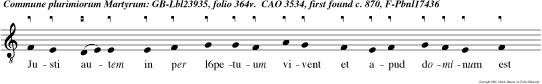 | Antiphon 1: CAO 3534 Justi autem in per l6petuum vivent et apud dominum est merces eorum |