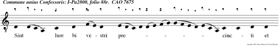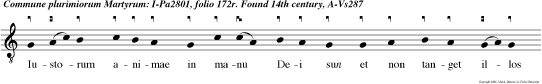 | Antiphon 1: Gauden in celis anime san torum qui chri sti vestigia sun secuti et quia pro ejus amore sanguinem suum fuderun ideo cum chri sto regna bun in eternum |
