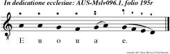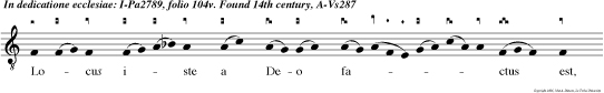 | Antiphon 1: CAO 2914 Fundata est domus domini super verticem montium et exaltata est super omnes colles. |