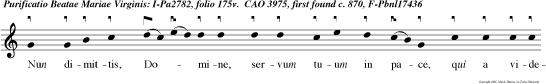 | Responsory Verse 1: CAO 7666 Responsum accepit SimeDPc 5 a Spiritu San to, non visurum se mortem nisi videret Christum Domini. |