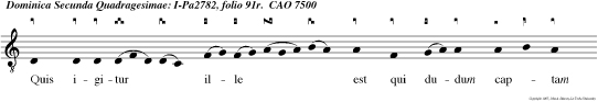 | Responsory 2: CAO 7406 Postquam impleti sun dies purgationis ejus secundum legem Moysi, tulerun illum in Jerusalem, ut sisterent eum Domino Sicut scrip tum est in lege Domini: Qui a omne masculinum