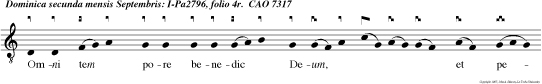 | Antiphon 1: CAO 2641 Emissiones tuae paradisus malorum punicorum cum pomorum fructibus |