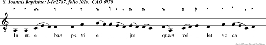 | Antiphon 2: CAO 3353 Innuebant patri ejus quem vellet vocari eum et scrip sit, dicen Joannes est nomen ejus |