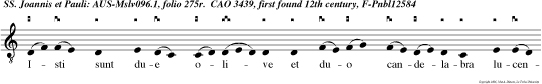 | Antiphon 1: CAO 4251 Paulus et johannes dixerunt iuliano nos unum deum colimus qui ferit celum et terram. |