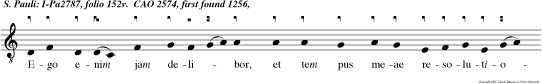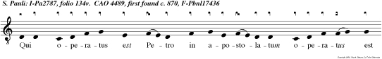 | Responsory 3: CAO 7582 Sancte Paule apostole, prae dicator veritatis et Doctor gen tium, inter cede pro nobis ad Deum, Qui te elegit. |
