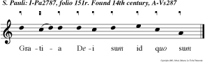 | Responsory Verse 1: CAO 7480 Gratia Dei in me vacua non fuit, sed gratia ejus semper in me manet. |