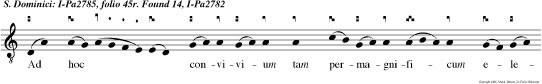 | Sequence : 1.In coelesti hie archia Nova sonet har monia, Novo ducta can tico: Cui con cordet in hac via Nostr chori melodia Con gauden Dominico. 2.Ex Aegypto vastitatis virum suae volun tatis Vocat auc tor