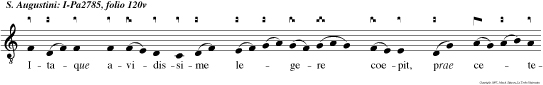 | Antiphon 1: Verum tamen primam hujus lec tionem non intelligen totumque tale arbitran distulit repeten dum exercitatior in Dominico eloquio. |