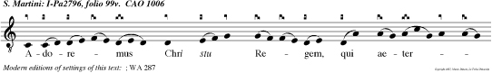 | Invitatory : CAO 1006 Adoremus Chri stu Regem, qui aeterna san tum Martinum coronavit gloria. |