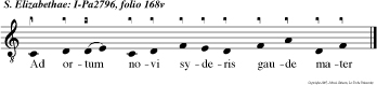 | Antiphon 1: Laetare Germania claro felix germine nascentis Elisabeth ex regali semine. |